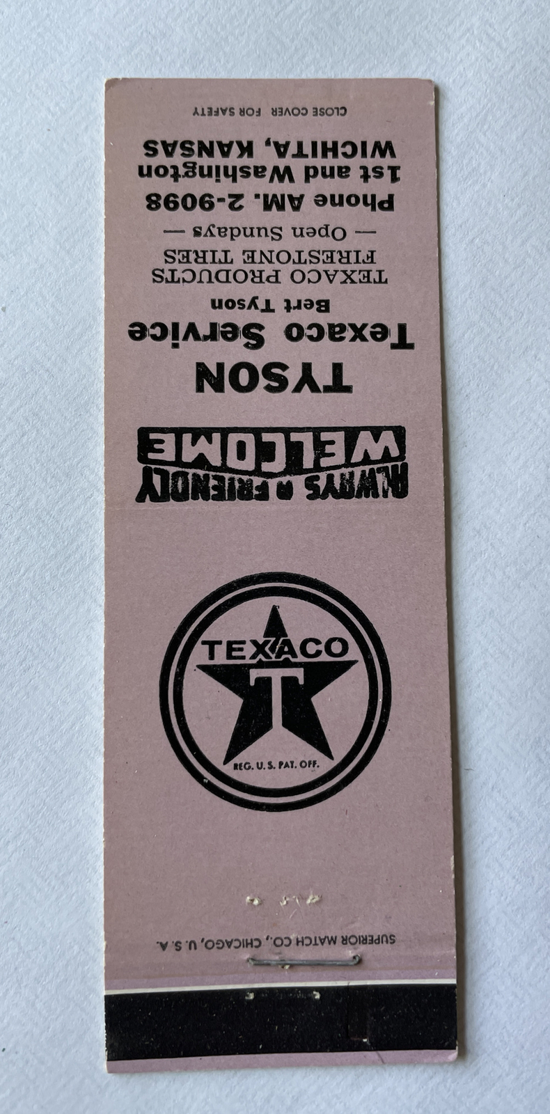 Old Matchbook Cover Tyson Texaco Service Wichita Kansas Cc280 Ebay